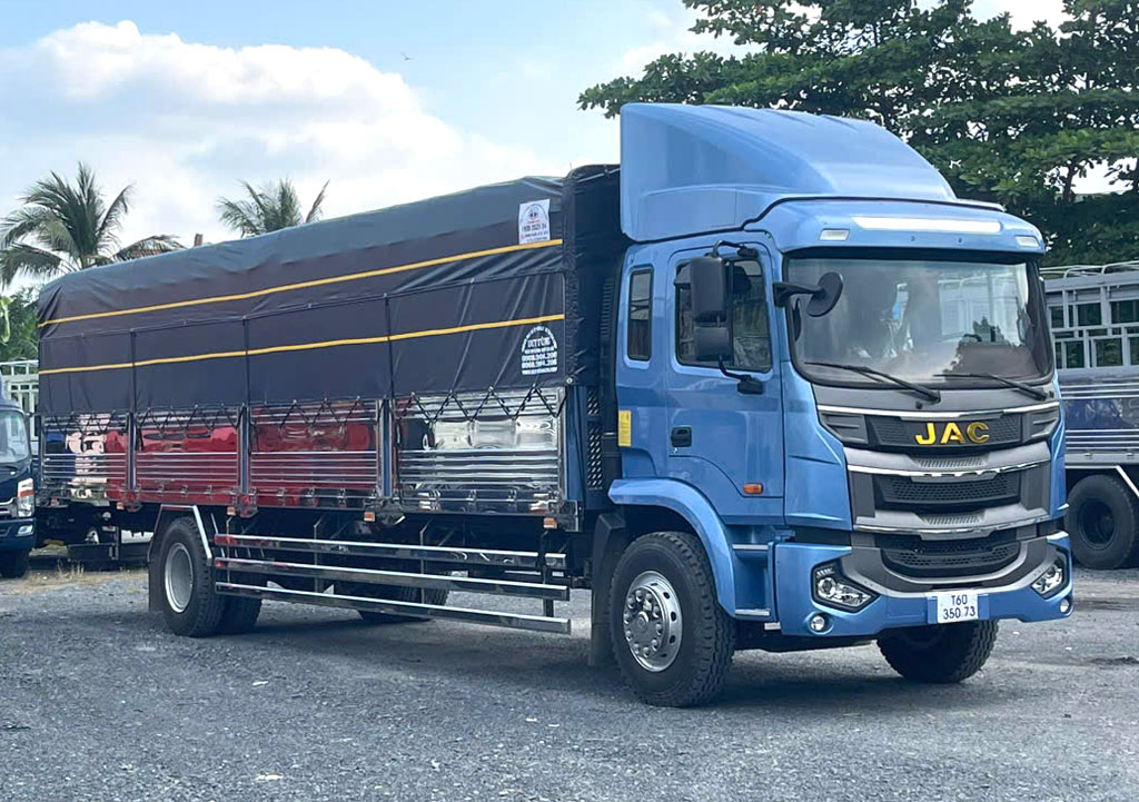 Xe tải Jac A5 thùng bạt dài 10M có trọng tải 7 tấn là mẫu xe tải thùng dài chuyên chở hàng nhẹ với khối lượng thùng hàng chứa được 60 mét khối mang lại lợi ích thiết thực cho những chuyến hàng đúng tải, chạy đường dài, tiết kiệm nhiên liệu.